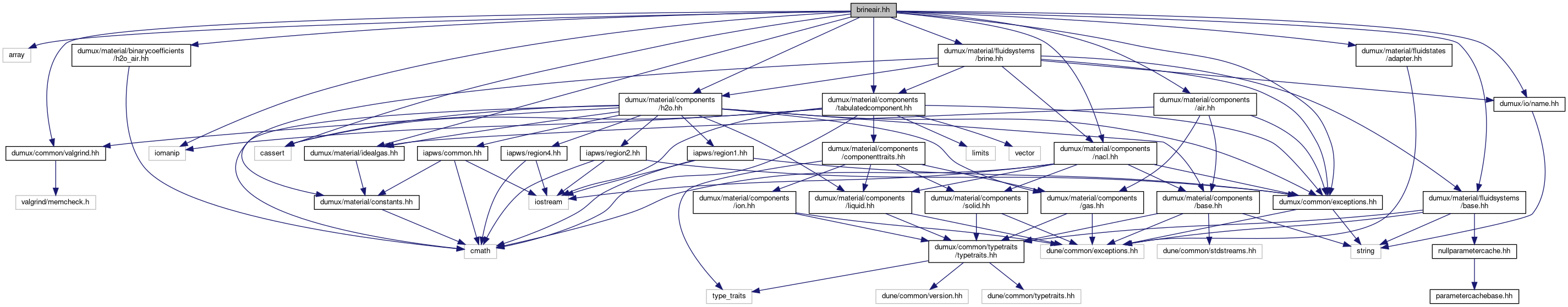 #include <array>#include <cassert>#include <iomanip>#include <dumux/material/idealgas.hh>#include <dumux/material/fluidstates/adapter.hh>#include <dumux/material/fluidsystems/base.hh>#include <dumux/material/fluidsystems/brine.hh>#include <dumux/material/components/air.hh>#include <dumux/material/components/h2o.hh>#include <dumux/material/components/nacl.hh>#include <dumux/material/binarycoefficients/h2o_air.hh>#include <dumux/material/components/tabulatedcomponent.hh>#include <dumux/common/valgrind.hh>#include <dumux/common/exceptions.hh>#include <dumux/io/name.hh>Go to the source code of this file.