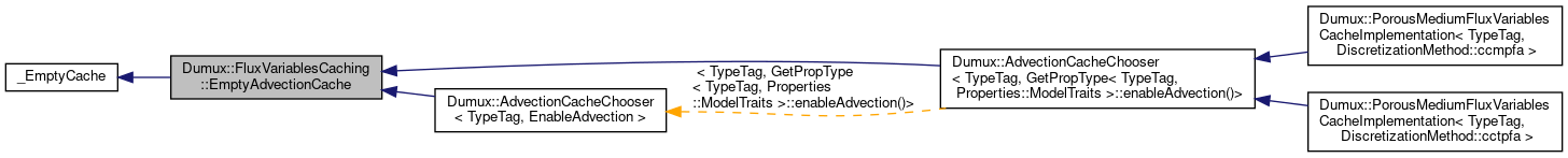 Inheritance diagram for Dumux::FluxVariablesCaching::EmptyAdvectionCache: